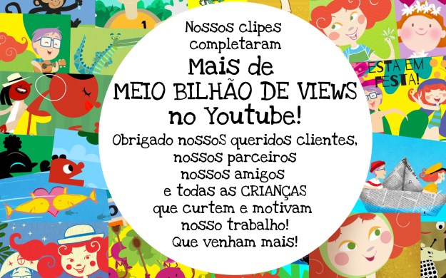 Estamos comemorando! Nossos clipes atingiram MAIS DE MEIO BILHÃO DE VIEWS NO YOUTUBE! Obrigada aos nossos queridos clientes, nossos parceiros, nossos amigos e às CRIANÇAS que nos curtem e nos motivam! Que venham mais!